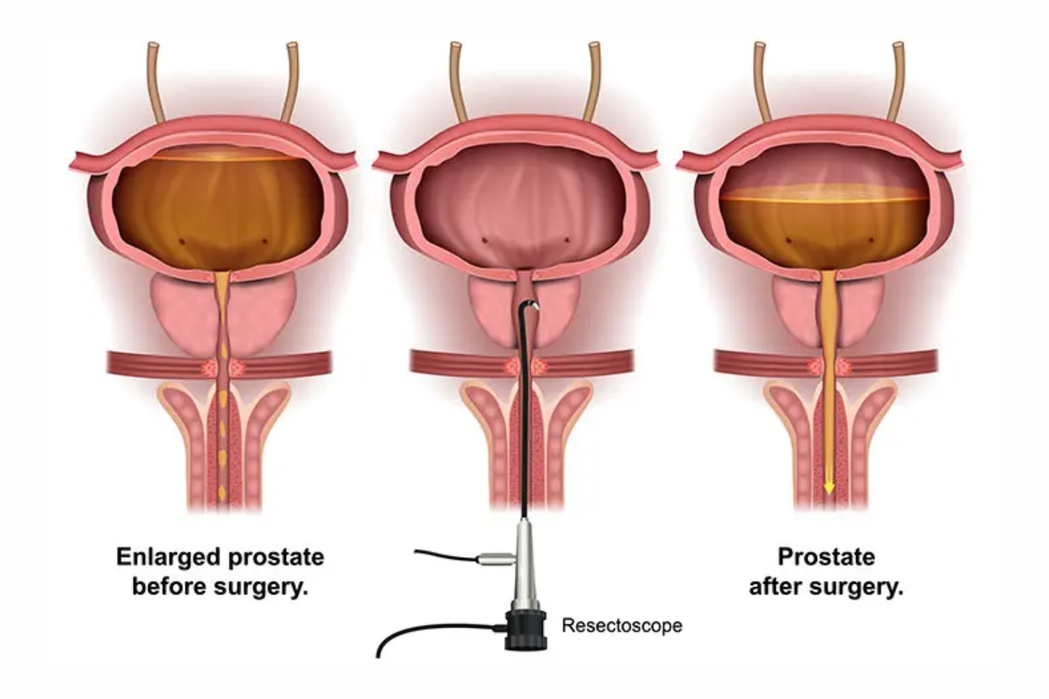 An instrument called a resectoscope is inserted through the tip of your penis and into the tube that carries urine from your bladder (urethra). The resectoscope helps your doctor see and trim away excess prostate tissue that’s blocking urine flow.